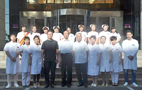 原国家卫生部副部长曹荣桂(左5)、原北京大学副校长吕忠生(右5)、北京大学人民医院中医科尹东辉主任(左4)与沈阳京科医院医院业务院长汪桂兰(右4)及医护人员合影